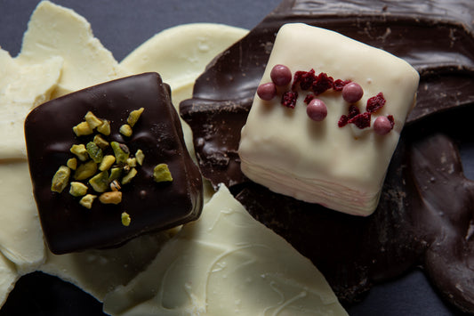 Vores Luksus Skyer er håndlavede gourmet skumfiduser, overtrukket med tempereret belgisk chokolade for den perfekte balance mellem sprød skal og luftig, silkeblød kerne. Fremstillet i små batches – som at spise en sky, bare i luksusudgave.